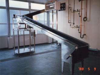 冷凍品フリーザーより引出コンベアー